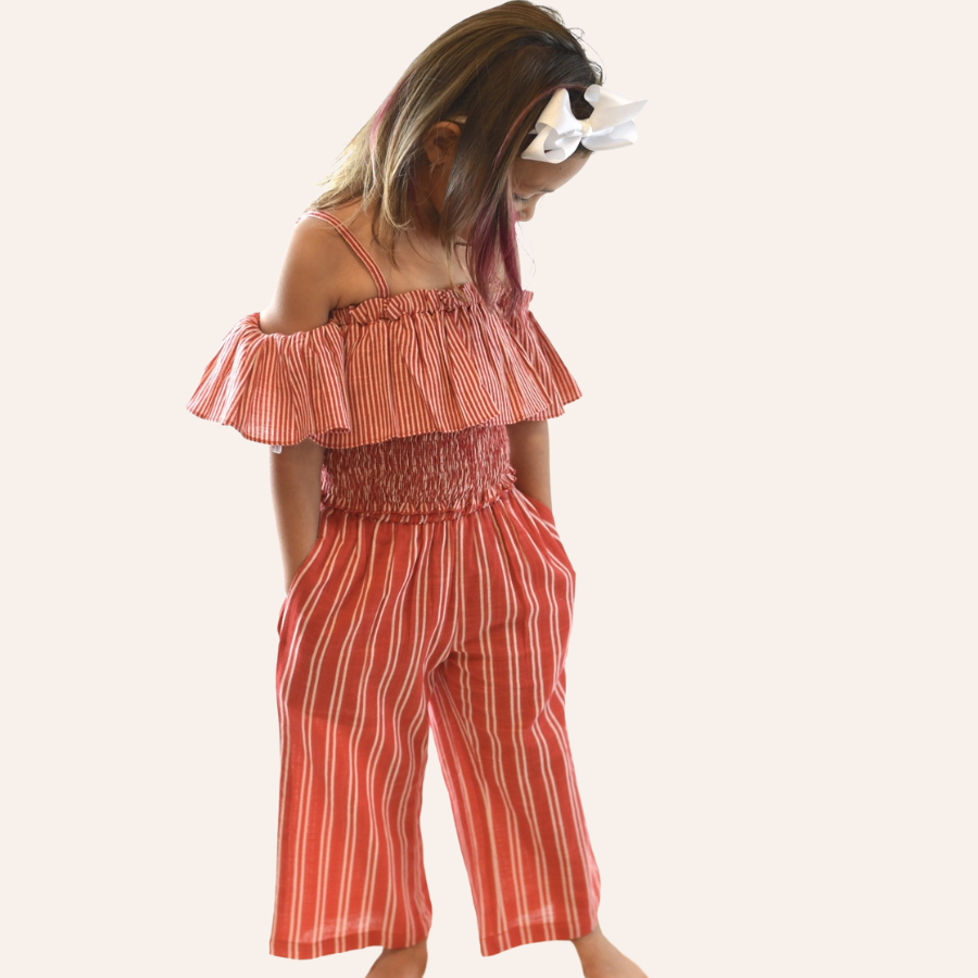 Candy-Striped Smocked Ruffle Top & Pants Set – 2 Piece