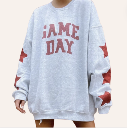 Grey 'Game Day' Sweatshirt with Red Glitter Stars