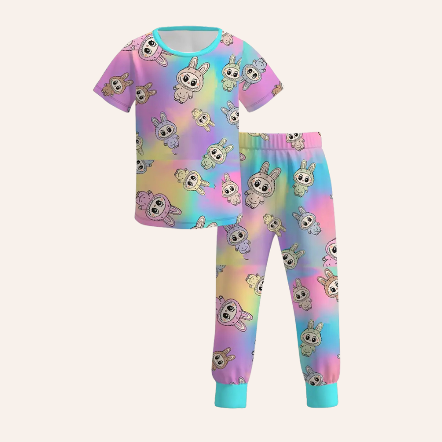 Labubu Printed Short Sleeve Pajamas Sleepwear For Kids