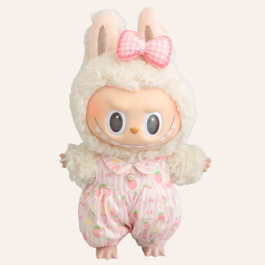 Labubu Pink Strawberry Jumpsuit with Bow Pin