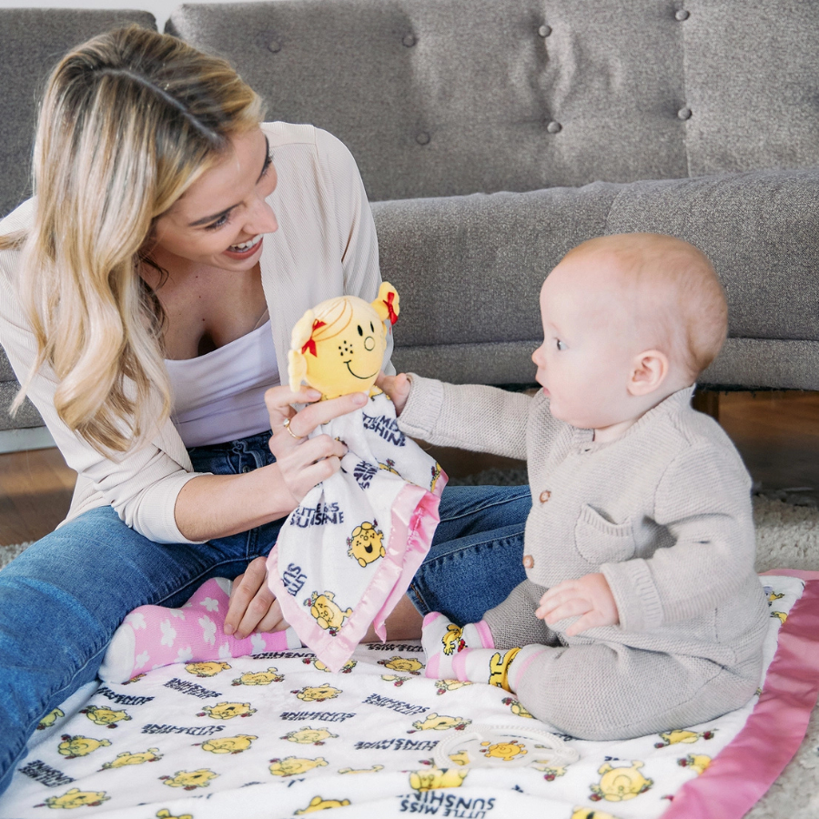 Scallop Classic Knit Baby Blanket+Bunny Rattle Gift Set