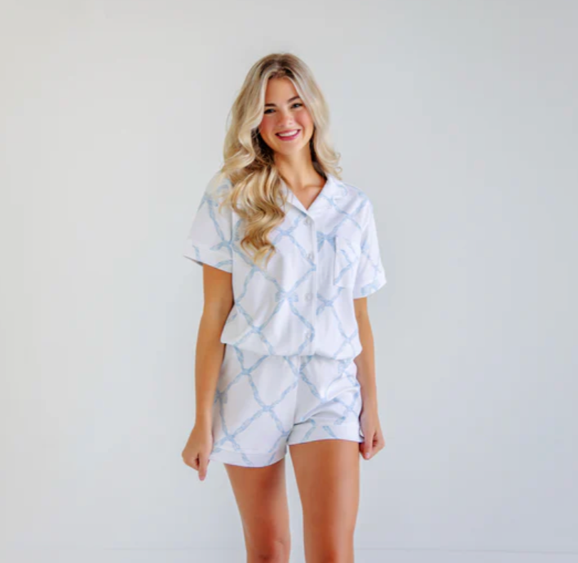 The Beaufort Bonnet Company - Sadler Sack Gown in Blue Microdot