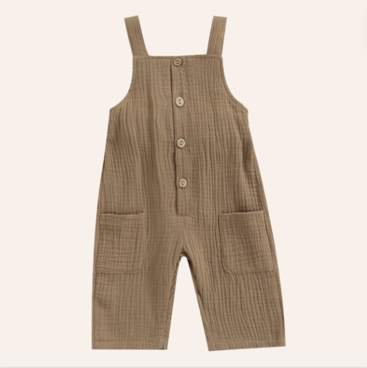 Baby Brown Linen Overall Romper