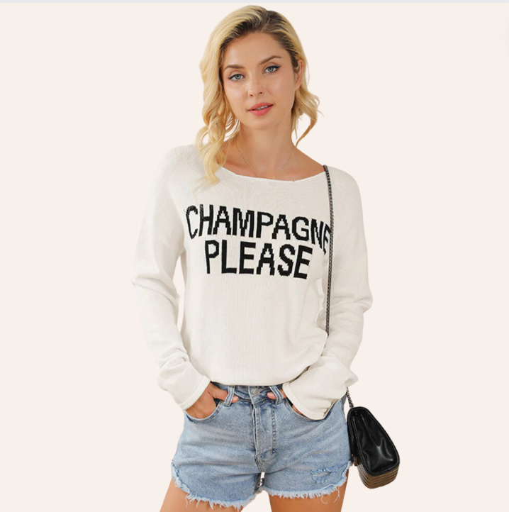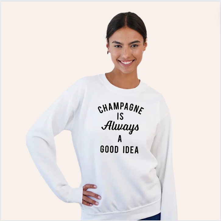 Women's White 'Champagne is Always a Good Idea' Crewneck Sweater