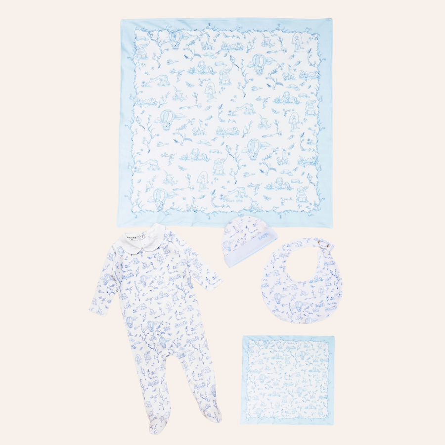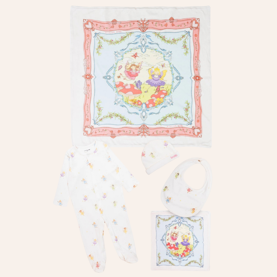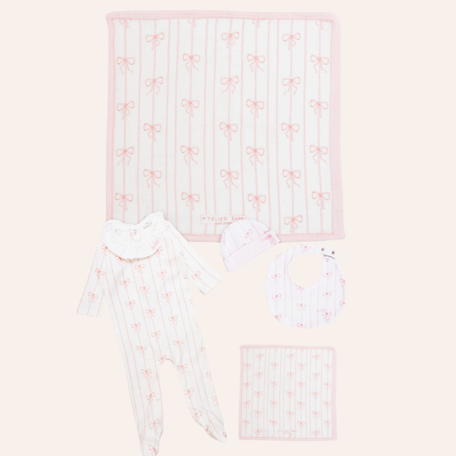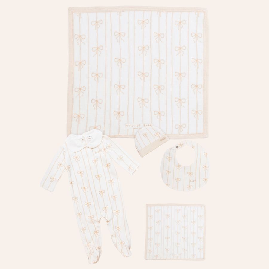 This Newborn Set consists of 5 pieces, presented in an elegant gift box, making it perfect for gifting.