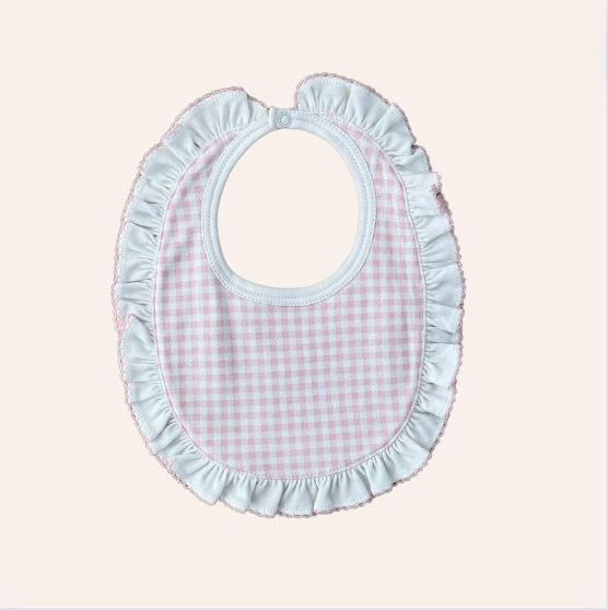 Pink and white checkered bib and Blue and white checkered bib made with 100% Pima cotton. Ready to be monogrammed.