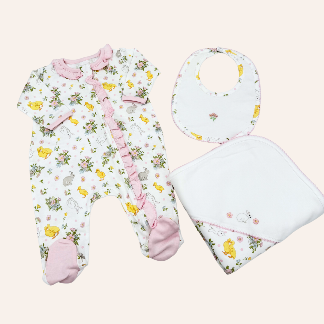 BT Girls Easter Floral Print Footie, Blanket and Bib Set