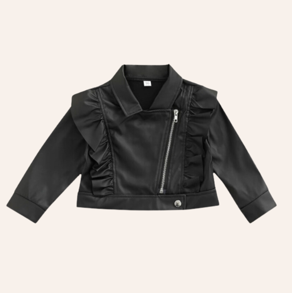 Introducing our Black Zipper Faux Leather Baby Jacket, a stylish and trendy addition to your little one's wardrobe! Crafted with care from high-quality faux leather, this jacket combines fashion and functionality for a cool and edgy look.