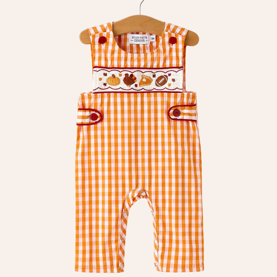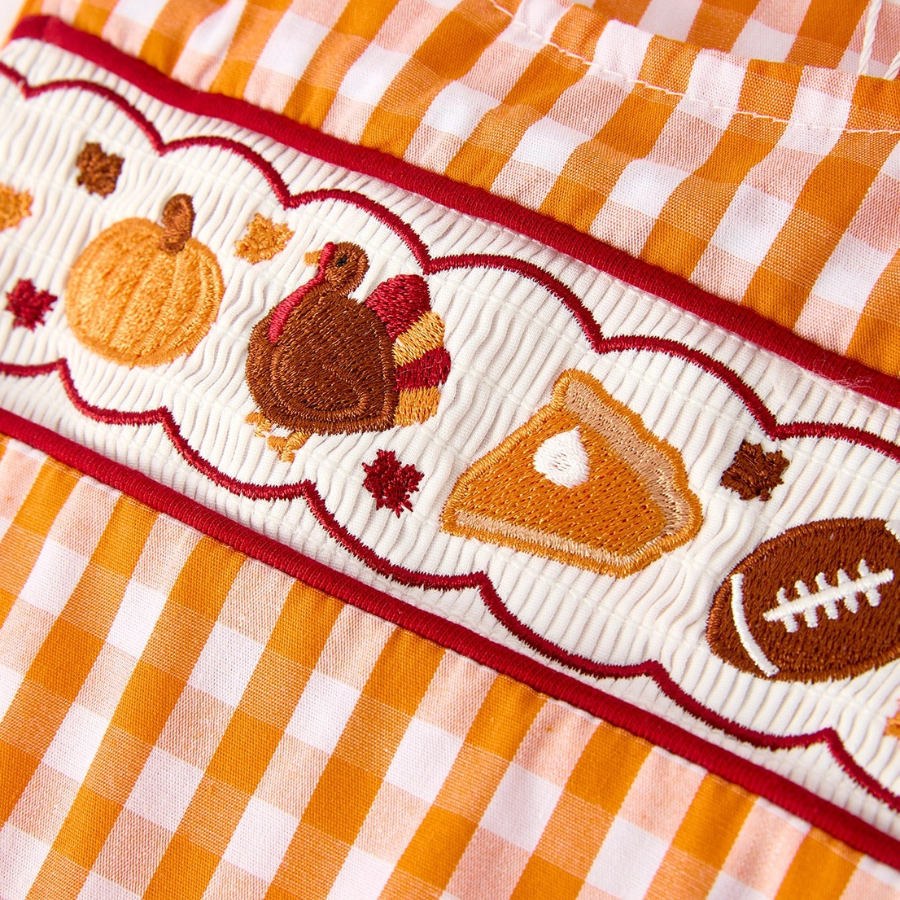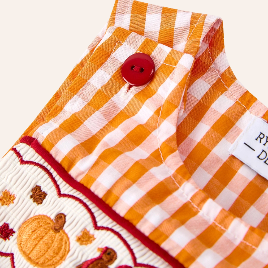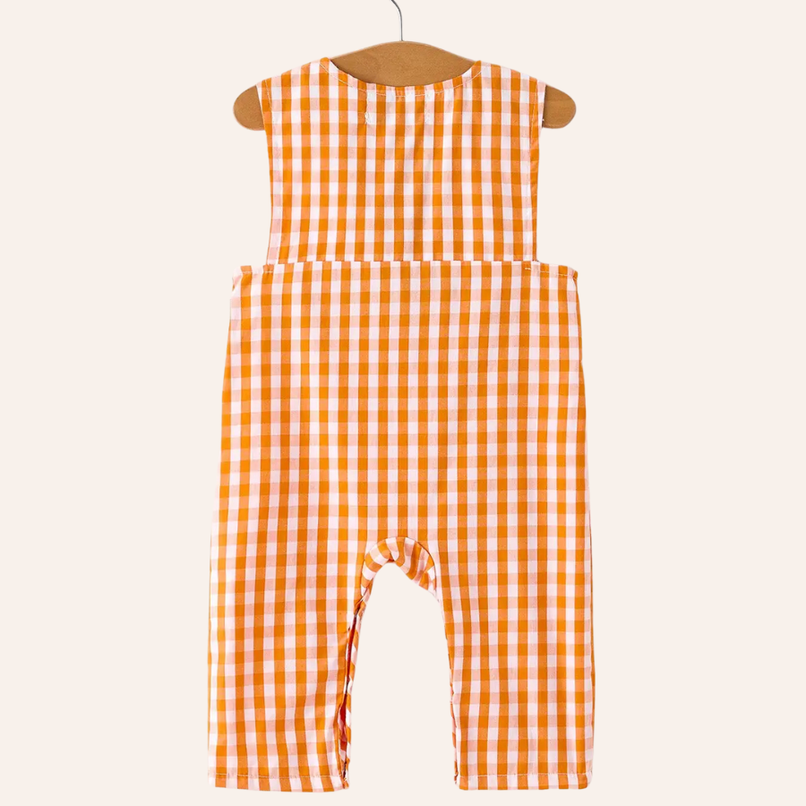 Dress your little one in festive charm with this Fall Embroidered Romper for Baby Boys. Featuring a cozy orange checkered pattern and playful Halloween details, it’s perfect for celebrating the season in style. Soft and comfortable, this romper keeps your baby snug while adding a touch of autumn fun to every outfit. Ideal for family gatherings or seasonal photos, it’s a delightful way to welcome fall with warmth and cuteness.