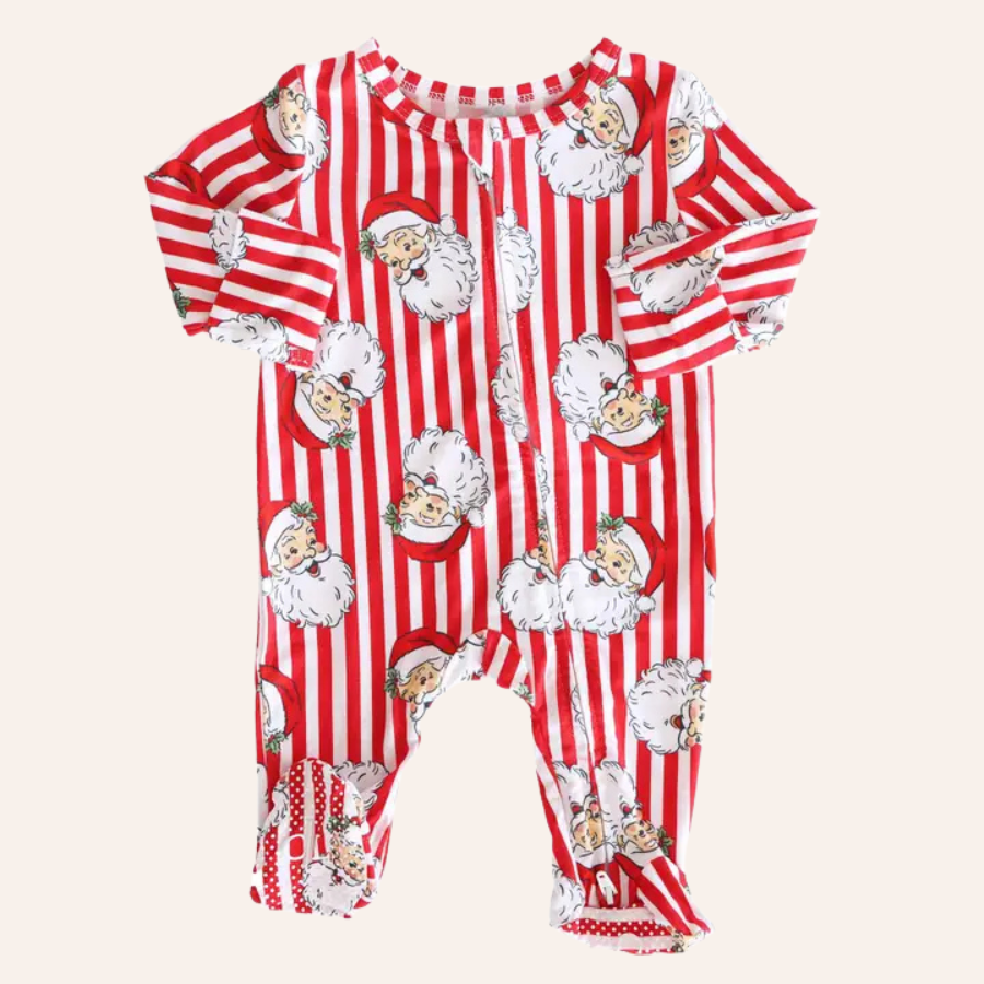 Our Christmas Bamboo Zipper Footies are soft, breathable, and perfect for festive snuggles. Available in Bow What Fun and Santa Claus Lane, these cozy footies offer comfort, stretch, and easy zip changes for your little one.