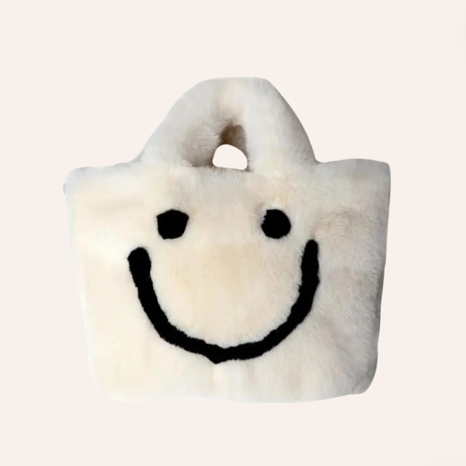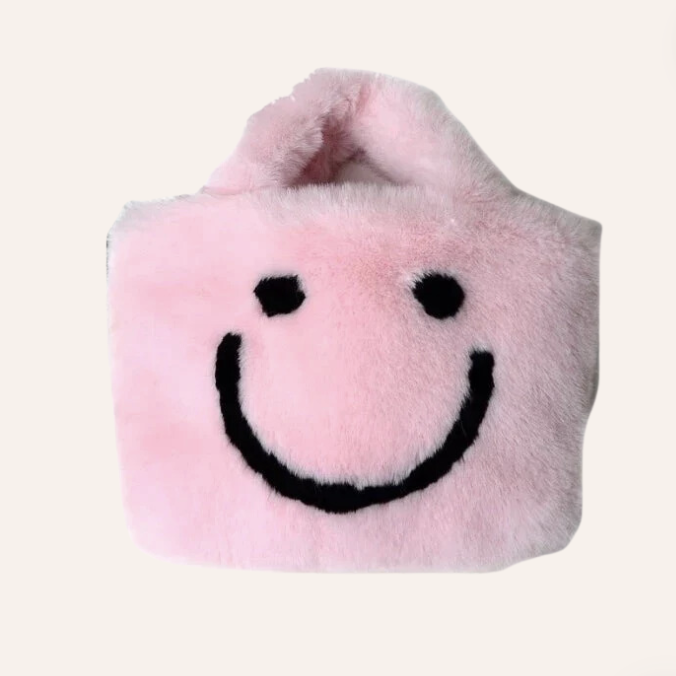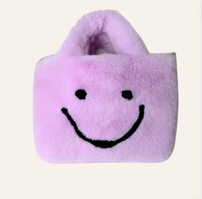 Fun, furry, and full of smiles this faux fur bag is sure to be a hit with your little one! Doubles as a hand bag or use the gold chain it comes with to use as a cross-body bag.