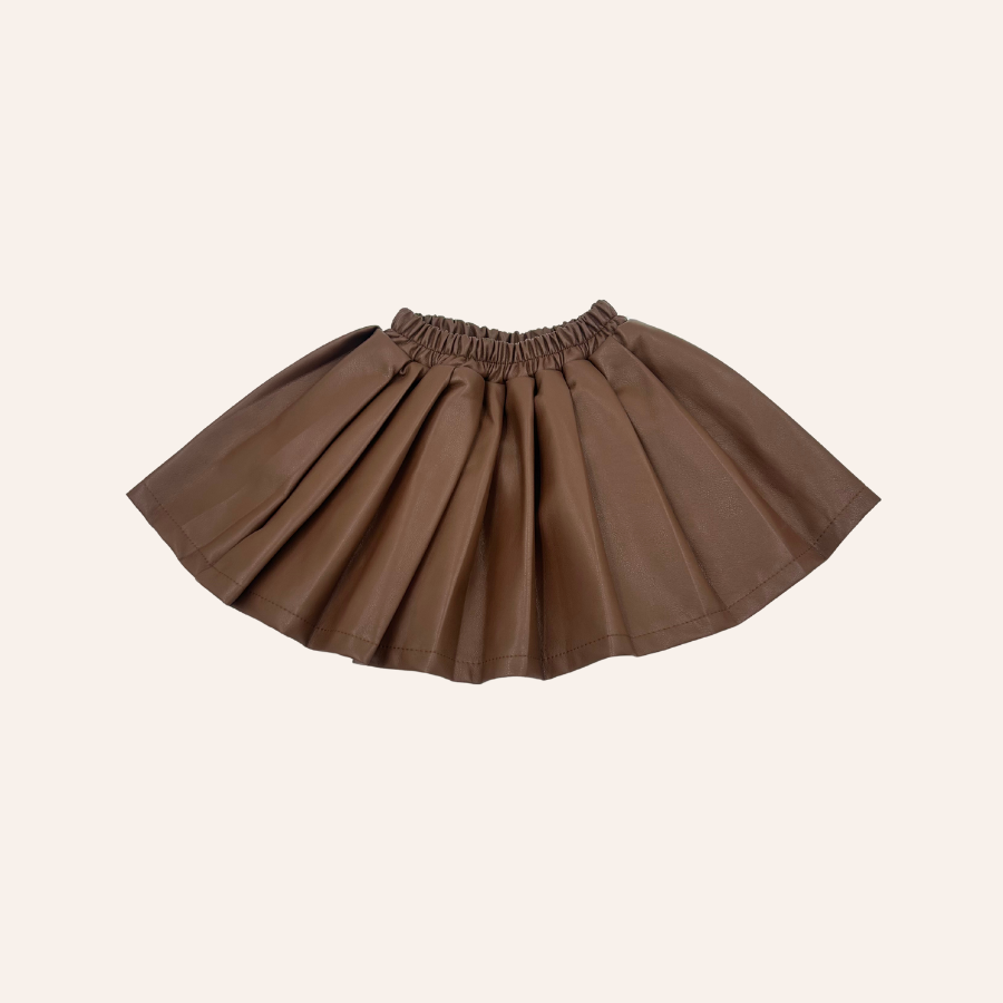 A girls' leather plaid skirt in sizes 2T to 6 combines the edgy style of leather with the classic look of plaid. It's a trendy, versatile piece perfect for casual or semi-formal outfits. Pair with t-shirts, blouses, tights, and boots for a cute, stylish look.
