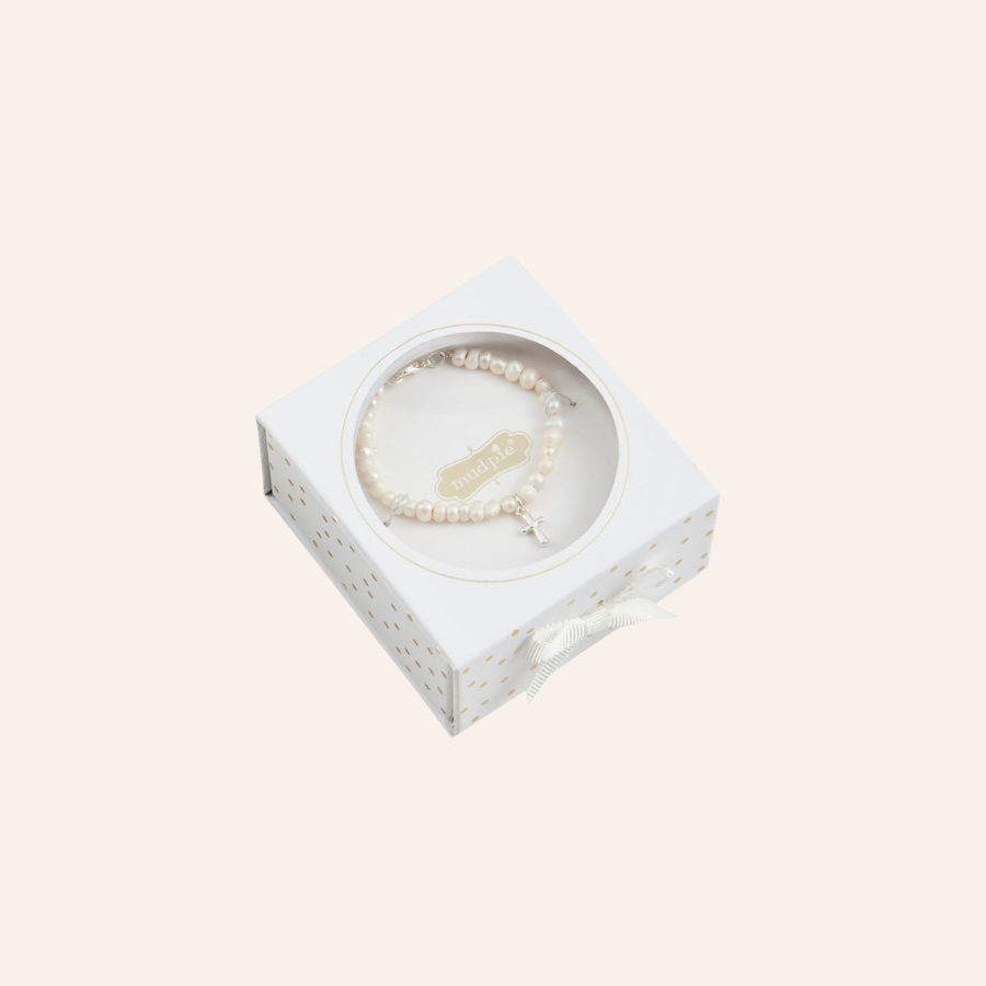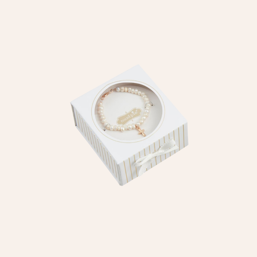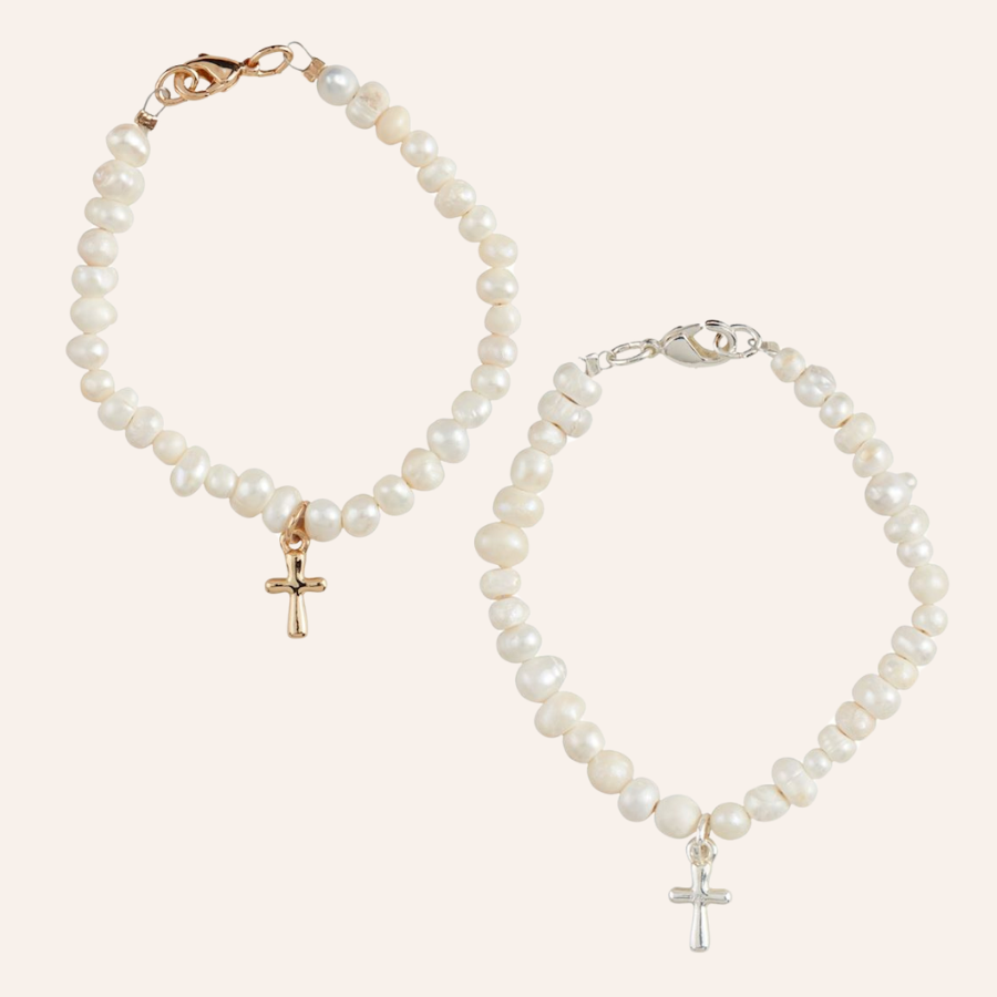 This exquisite pearl bead bracelet is a charming accessory designed specifically for toddlers aged 2T-5T. Each delicate pearl bead is carefully selected to create a timeless and elegant look that is perfect for any occasion. The bracelet features a petite metal cross charm, adding a touch of grace and spirituality to the design. The charm is crafted with attention to detail, ensuring it complements the overall aesthetic of the bracelet beautifully. For ease of wear and security, the bracelet is equipped with a reliable lobster clasp closure, making it simple for little ones to put on and take off with minimal assistance. The clasp is designed to hold the bracelet securely in place, providing peace of mind for parents. This bracelet is not only a lovely piece of jewelry but also a meaningful keepsake that can be cherished for years to come. Whether for a special event, a gift, or everyday wear, this pearl bead bracelet with a cross charm is a delightful addition to any toddler's accessory collection.