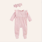 Enhance your baby's sleepwear collection with this charming Pink Rib Velour Baby Sleeper. This delightful two-piece set includes a ribbed velour footed sleeper designed to keep your baby cozy and comfortable all night long. The sleeper showcases stylish ruffle shoulders for an extra touch of cuteness. To complete the look, the sleeper comes with a coordinating bow headband, adding a charming accessory that will make your little one even more adorable. The inner leg snap closure ensures easy diaper changes without disturbing your baby's peaceful slumber. We prioritize your child's safety, and that's why this sleeper complies with all CPSC child safety regulations. It's important to note that children's pajamas should fit snugly for maximum safety. To maintain the sleeper's quality, turn it inside out and machine wash on a cold setting with like colors. For drying, simply tumble dry on low heat. Crafted with care, this sleeper is made from a high-quality blend of 93% polyester and 7% spandex. The soft and stretchy fabric ensures your baby can move freely while staying cozy and warm.