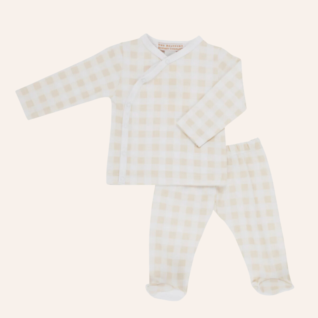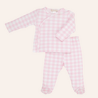 Introducing our newest set for your newest bundle of joy! Our Cameron Cross-Front Set in Palmetto Pearl Gingham, Palm Beach Pink Gingham, and Buckhead Blue Gingham features snaps down the front and makes for the most perfect + precious newborn gift.