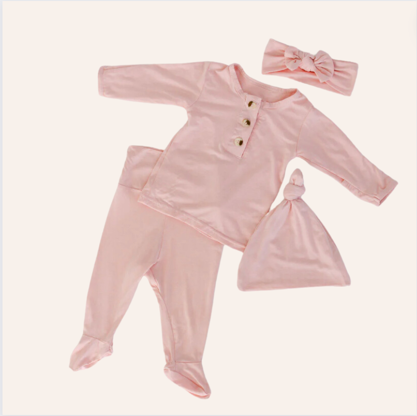 The Beaufort Bonnet Company - Darling Debut Set in Worth Ave White with Palm Beach Pink