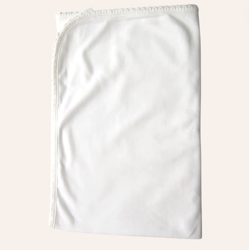 BBO White with Almond Piping Footie, Beanie and Blanket Set