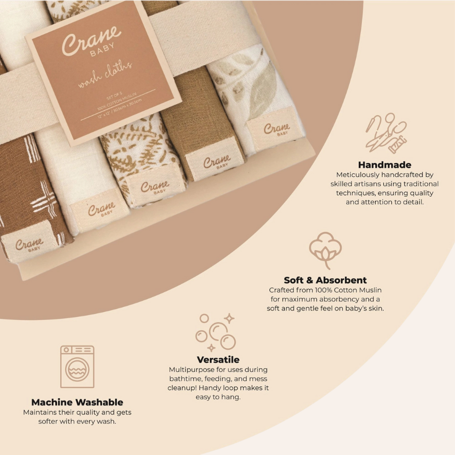 Introducing the Ezra 5-pc. Baby Wash Cloth Set in Woodlan Animal print, a must-have for every newborn's bath time routine. These washcloths are made from soft, premium muslin cotton, providing gentle care for your baby's delicate skin. These washcloths are durable, absorbent, and easy to clean, making them an essential addition to your baby care collection.
