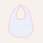 A classic white bib accented with red piping, soft and perfect for everyday feeding time.