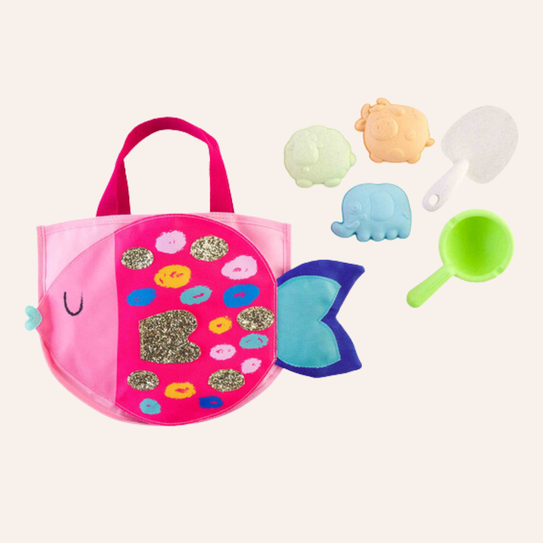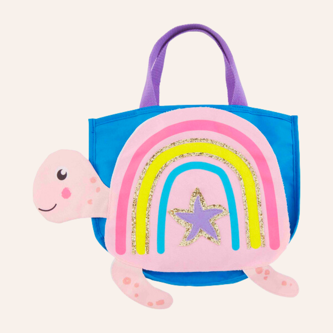 Our Sequin Turtle Sand Toy Tote Set is the perfect accessory to take trips to the seashore. The six piece set comes with an appliqued nylon beach tote. The tote features a turtle shape. The tote holds three sand molds and two sand scoops - making it the perfect play set for the beach.