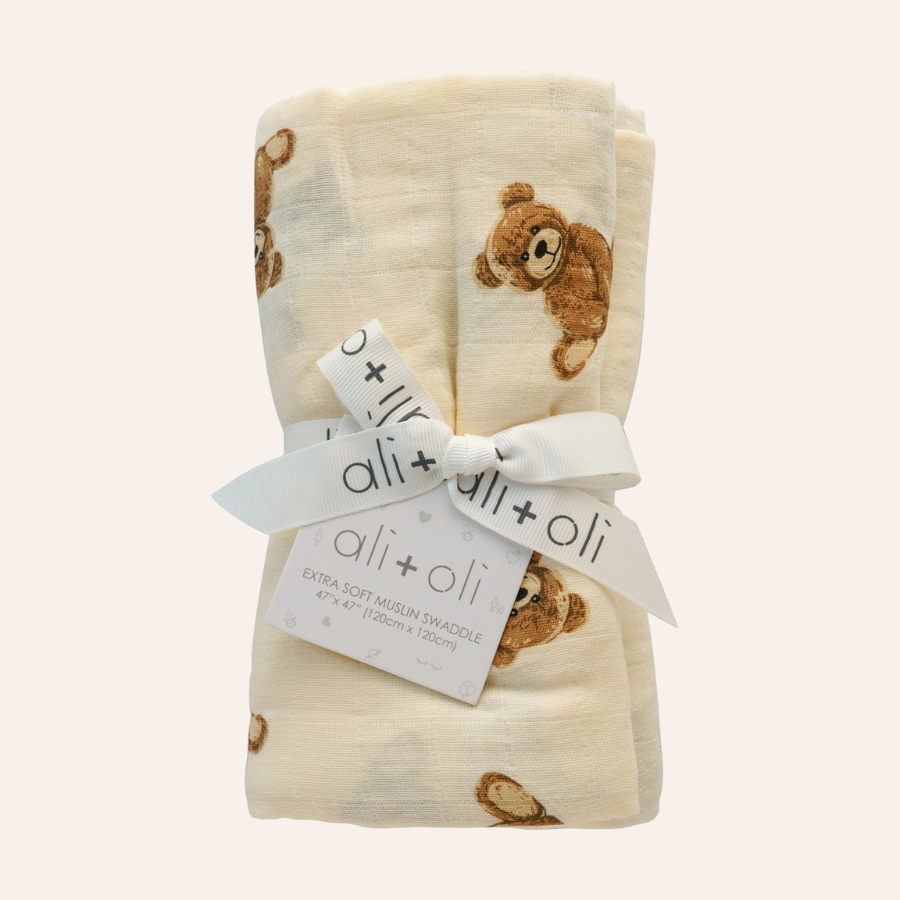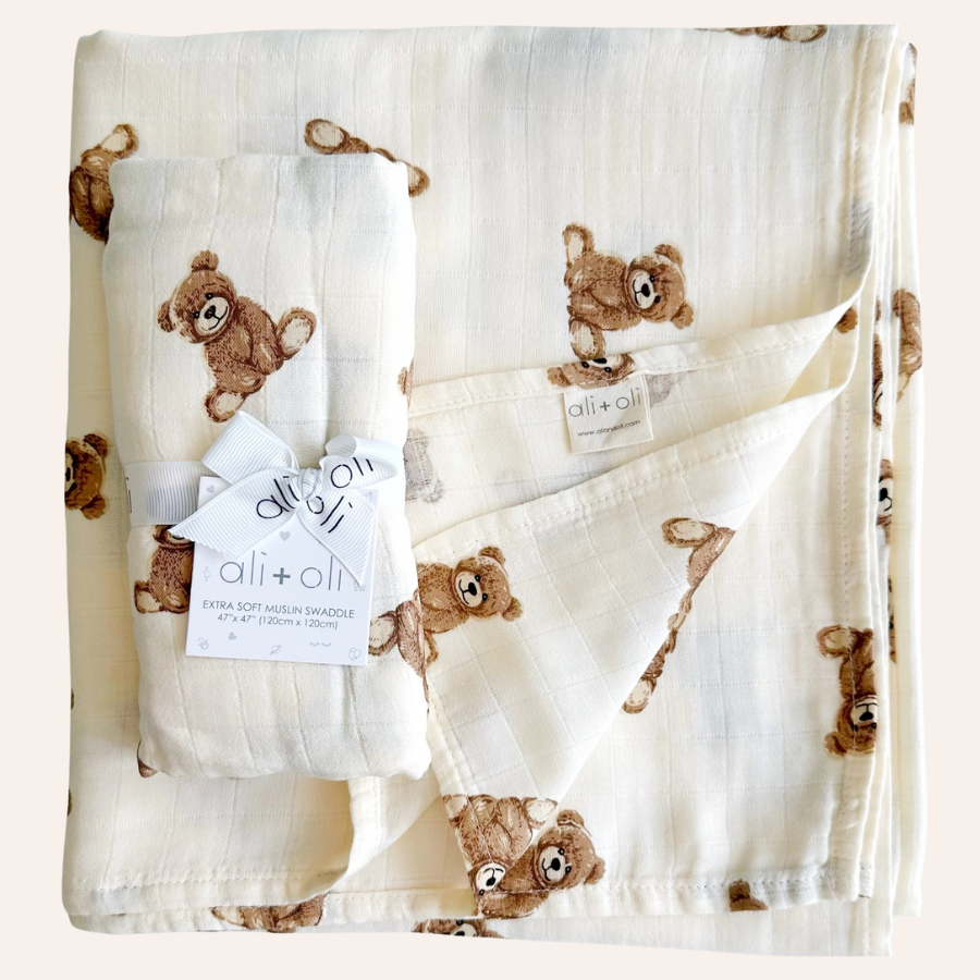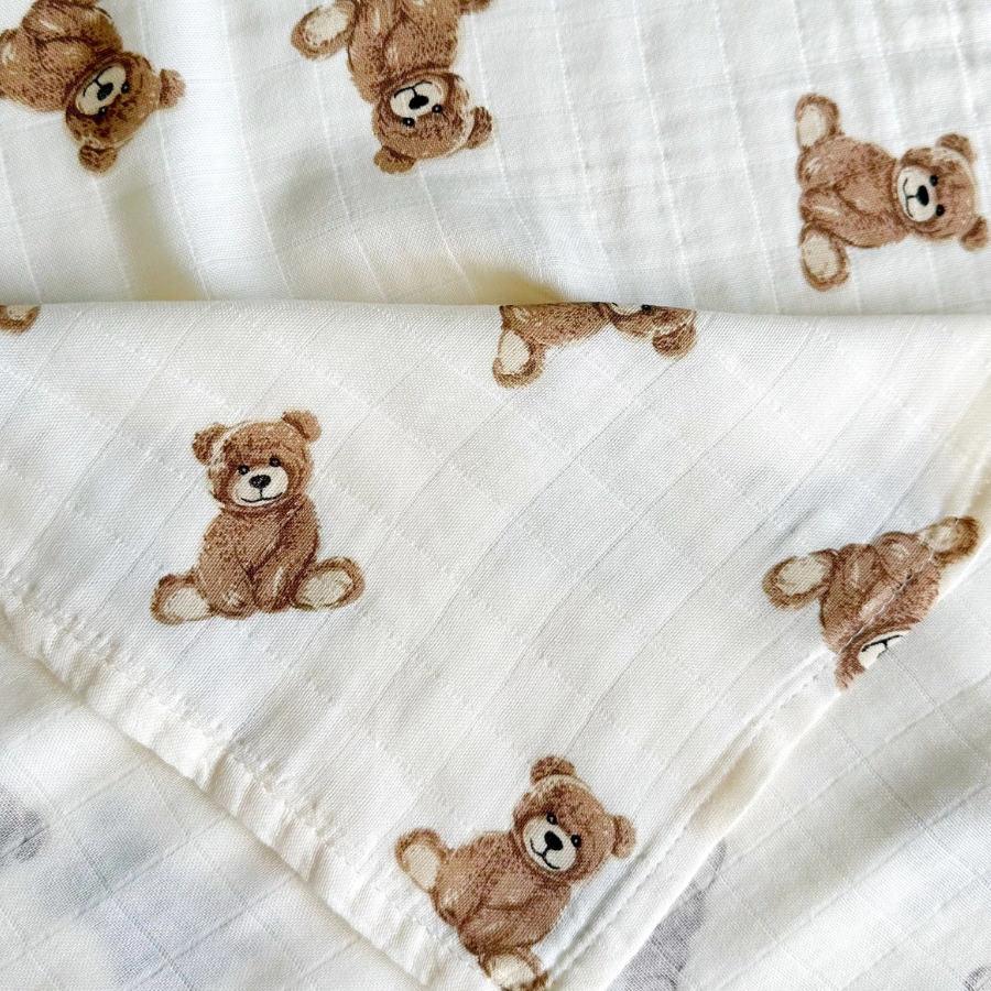 Bamboo Muslin Swaddle Baby Blanket (Teddy Bear)