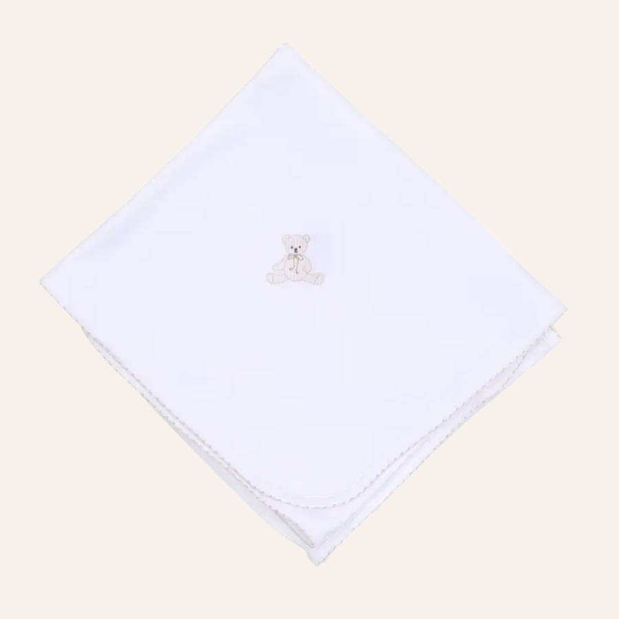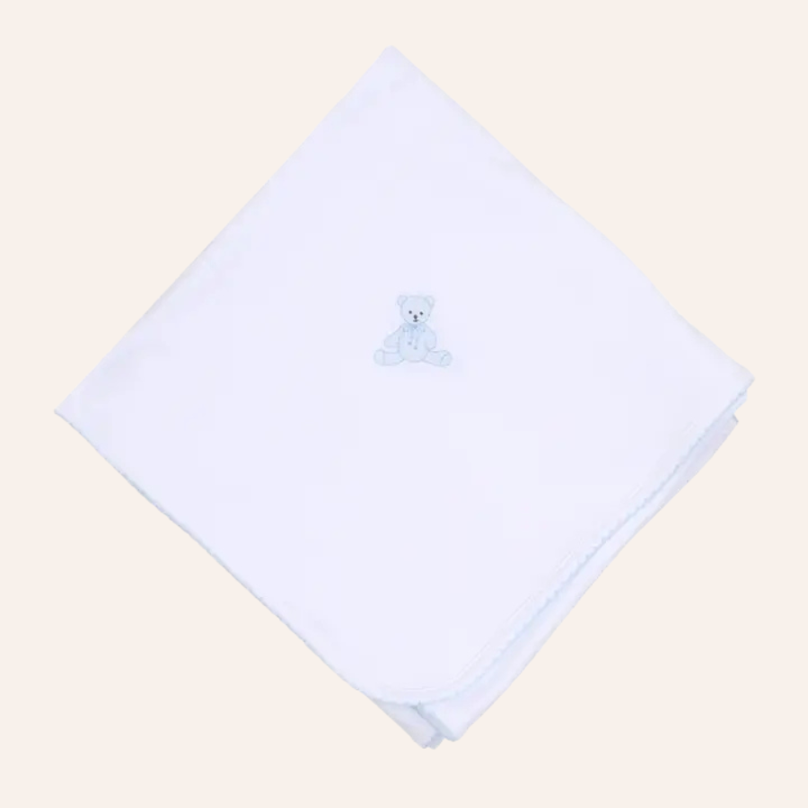 Soft, cozy, and cuddly. This blue teddy blanket keeps your little one warm and comforted anytime.