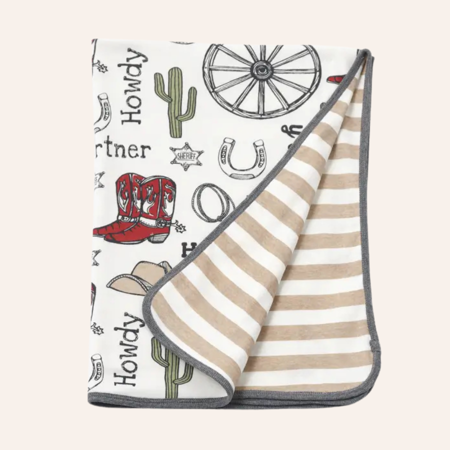 Western Cowboy Howdy Partner Cotton Baby Stroller Blanket