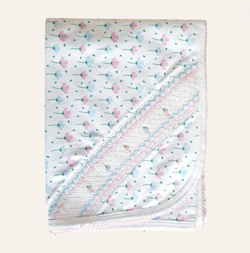 BT Hand Smocked Spring Flowers Pima Cotton Blanket