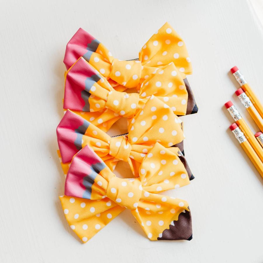 Get creative with the Sweet Scribble Hair Bow! This adorable bow looks like a pencil, making it the perfect accessory for back to school. Let your personality shine with this quirky and fun hair accessory.