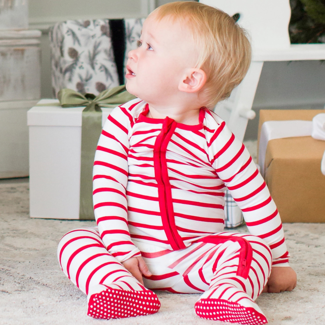 Baby Boys Red & White Stripe Modal Footed One Piece Pajama