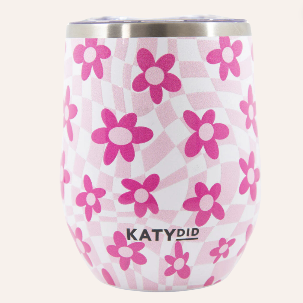 KD Pink Flowers with Groovy Checkered Wine Tumbler