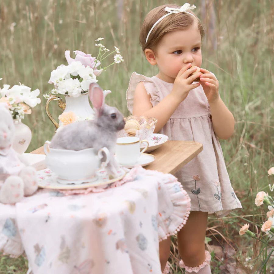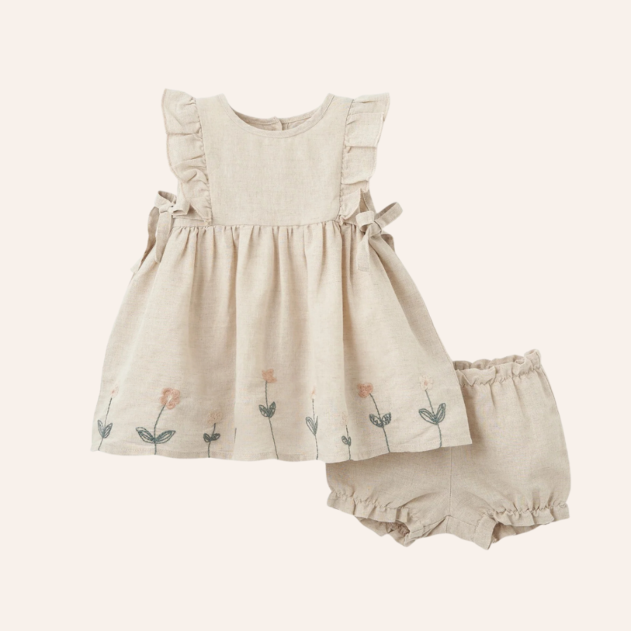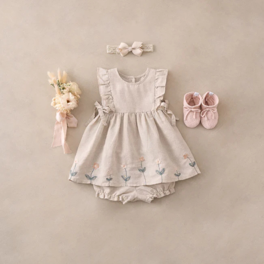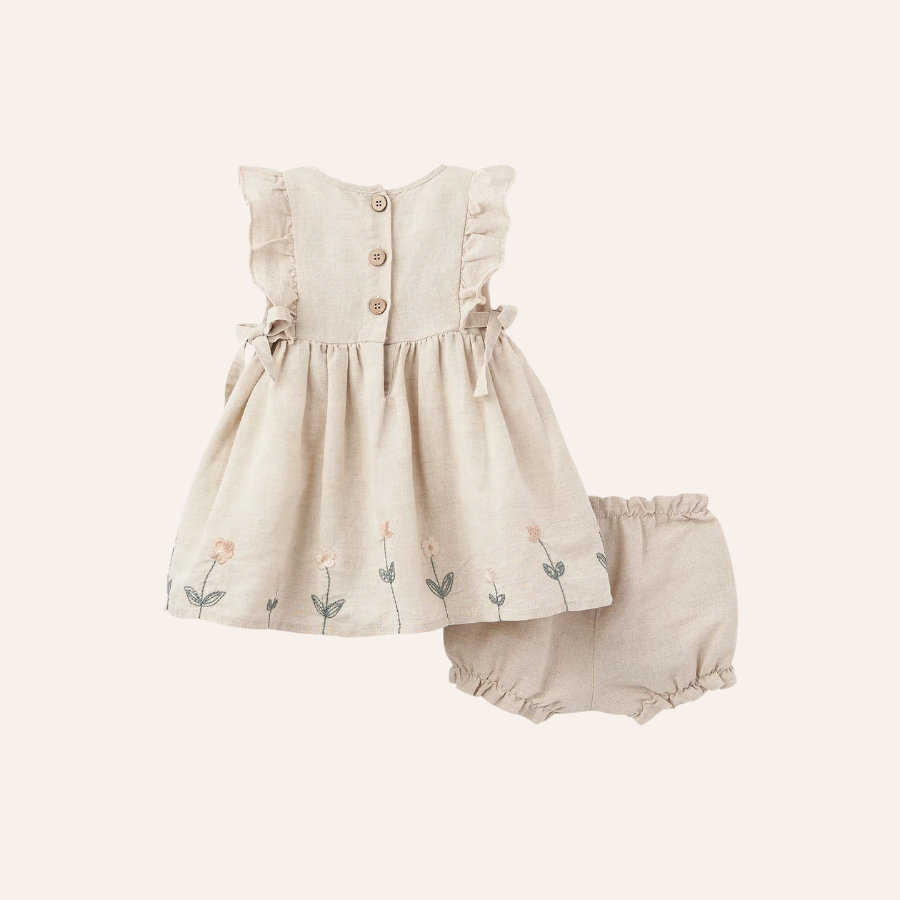 EB Natural Linen Floral Embroidered Dress w/ Bloomer