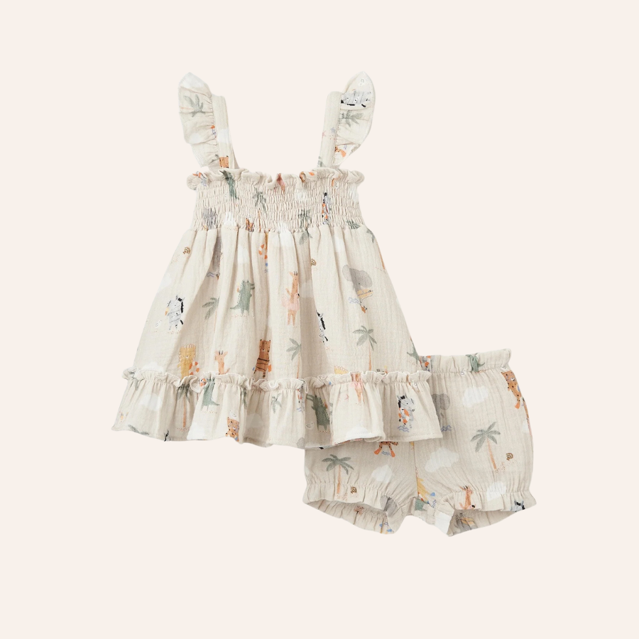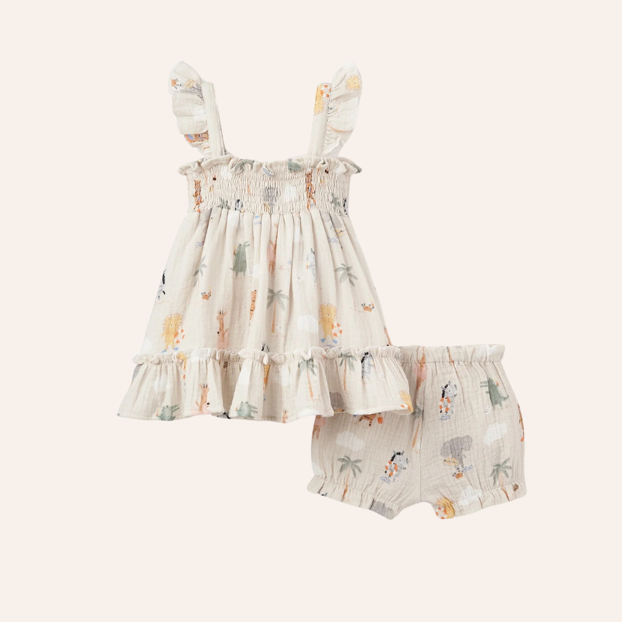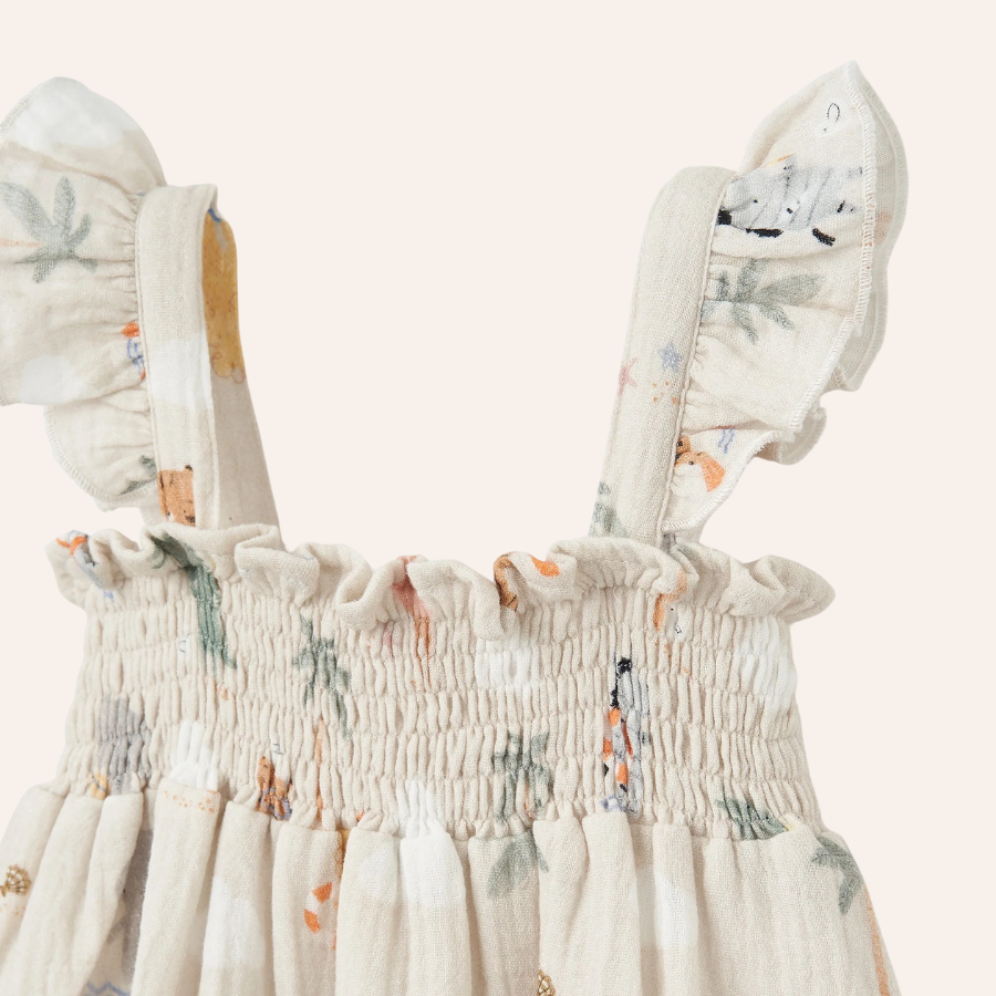 EB Seaside Safari Organic Muslin Smocked Sundress