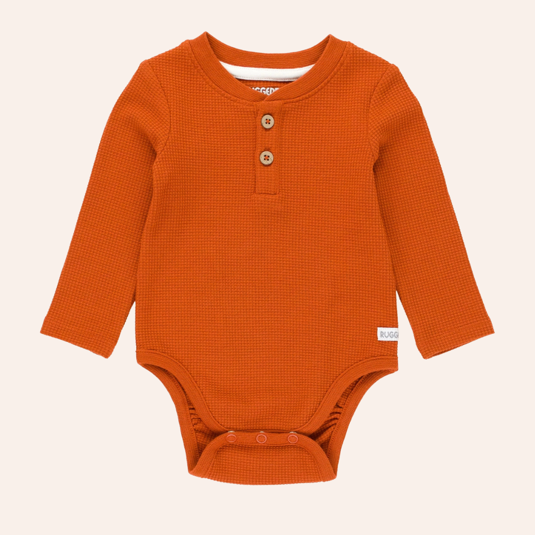 Baby Boys Rust Waffle Knit Henley Bodysuit
