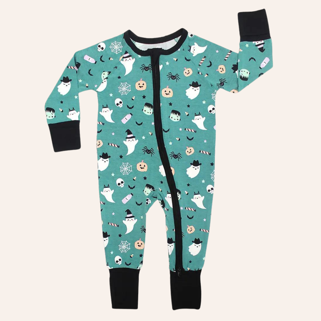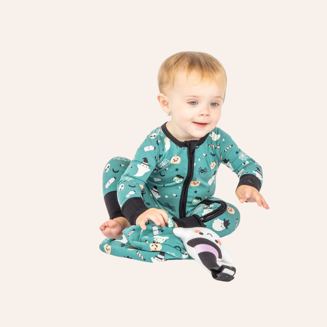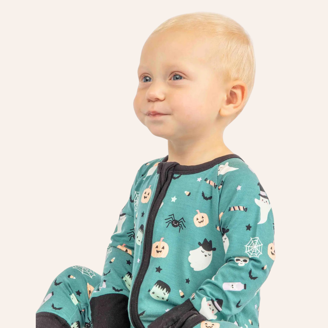 The softest bamboo baby pajamas in our Boo Crew pattern! This fun Halloween print is perfect for fall.