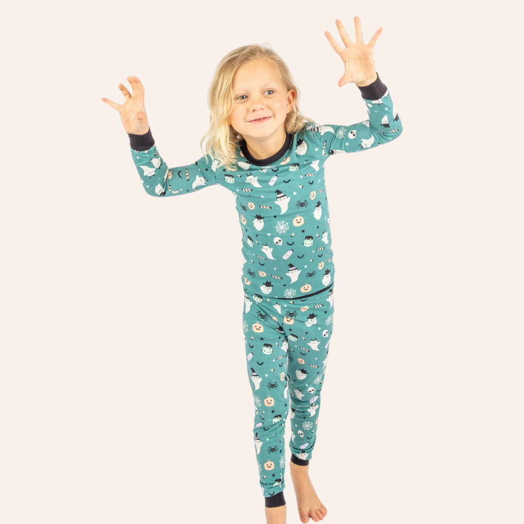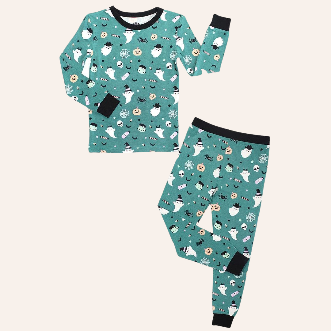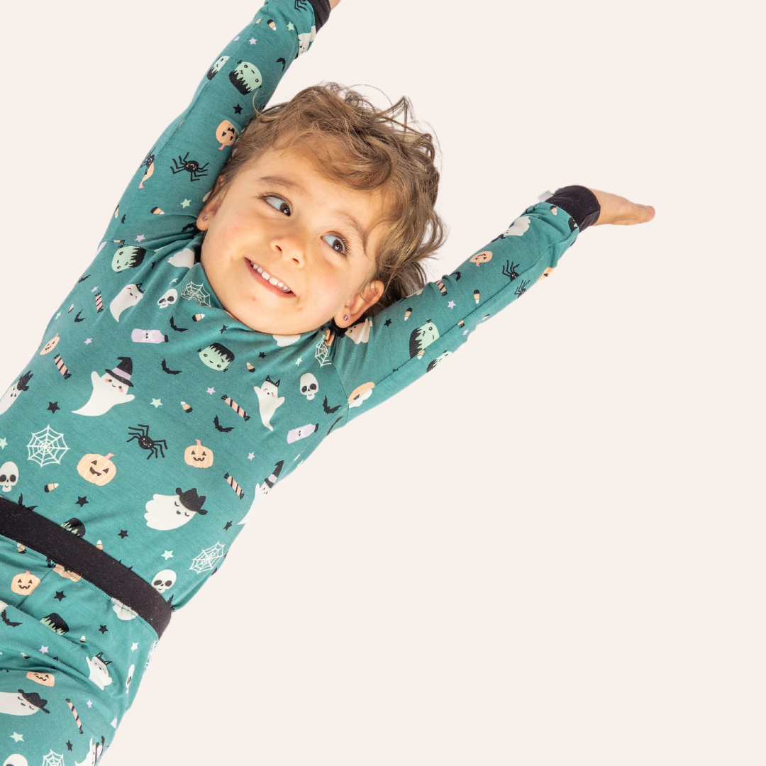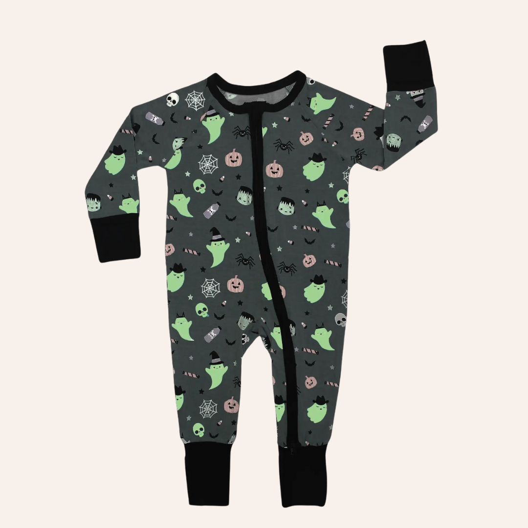 The softest bamboo baby pajamas in our Boo Crew pattern! This fun Halloween print is perfect for fall.