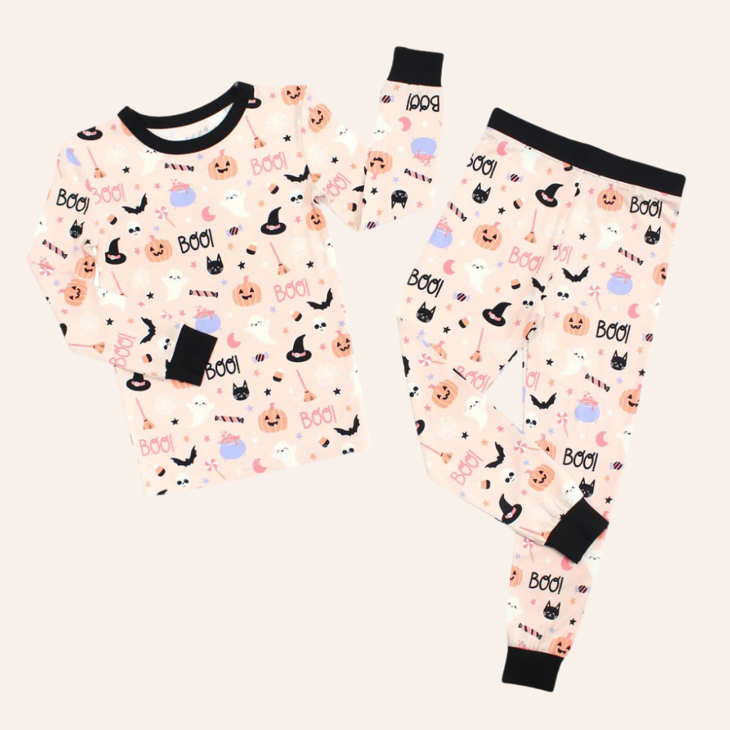 The softest bamboo toddler and kids pajamas in our Sweet and Spooky pattern! This fun Halloween print is perfect for fall. Check out more with this print for the cutest sibling match!