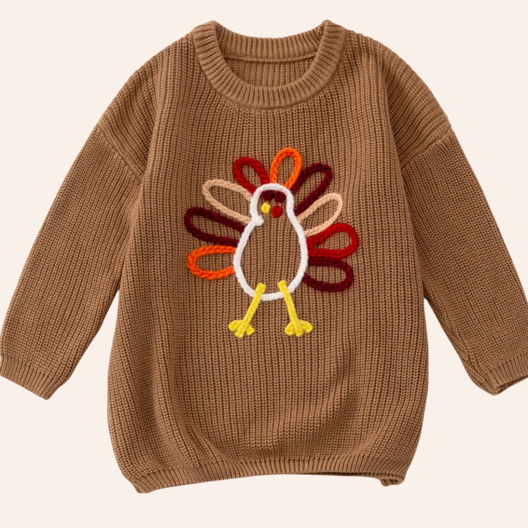 Please note that the embroidery on each sweater is handmade and there will be differences, just like every child is a unique treasure in the world! Baby Turkey Sweater Thanksgiving Oversized Sweater