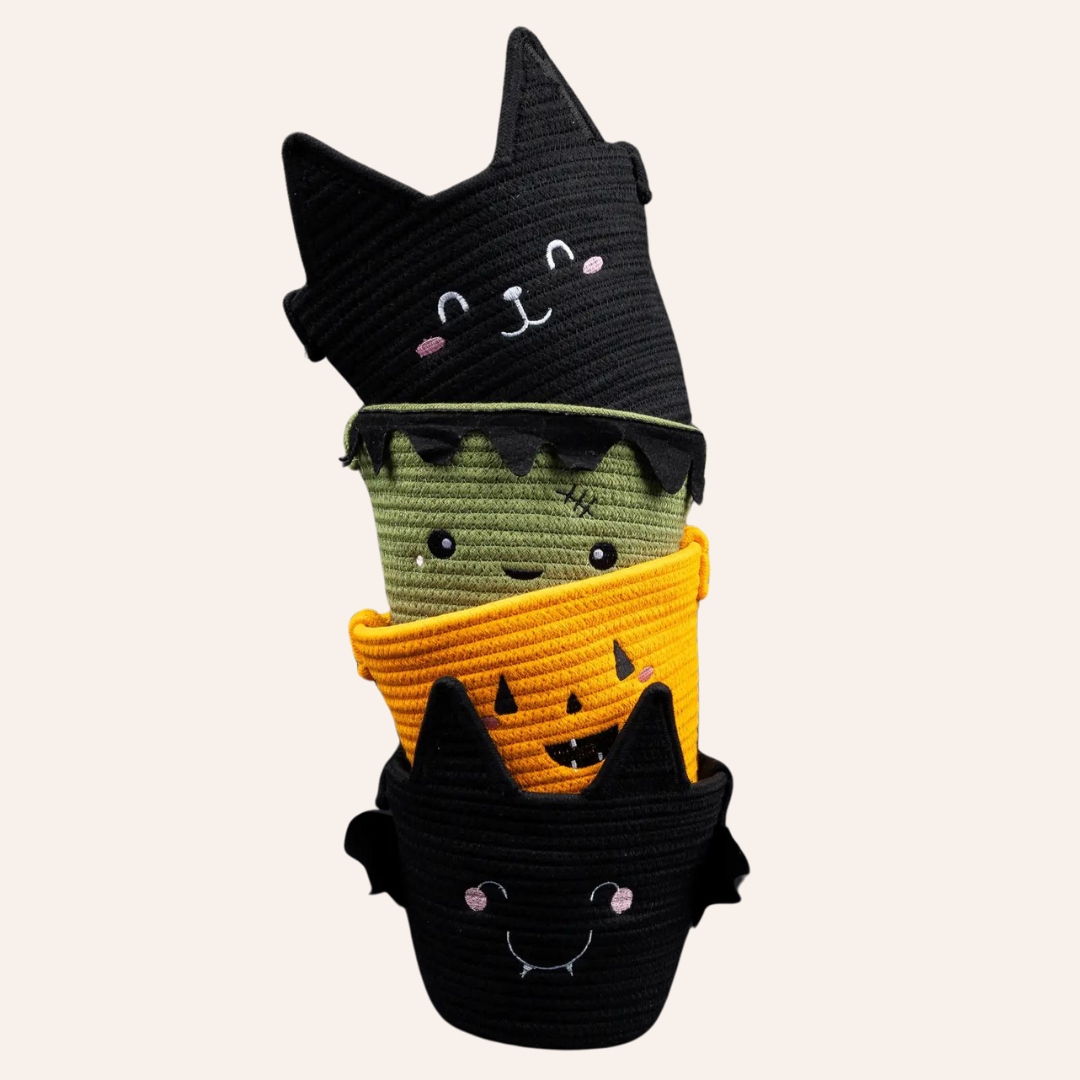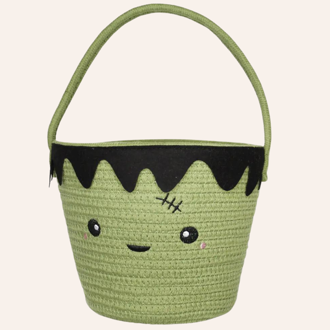 Perfect as a gift basket or for trick-or-treating. Your little one will be the most stylish kid in the neighborhood gathering candy with their monster pal, complete with lovable spooky face. Color: Green Fabric: Cotton rope woven basket Size: 11.5 x 7.5 x 8.5 inches Imported
