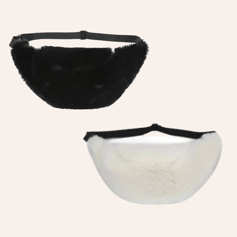 This Fluffy Fanny Pack, available in black and white, offers a stylish and cozy way to carry essentials while staying hands-free.