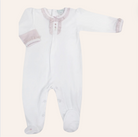 2. Ruffle Neckline: The footie is adorned with a lovely ruffle neckline, enhancing the overall design with a touch of sweetness and femininity.