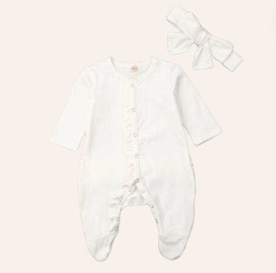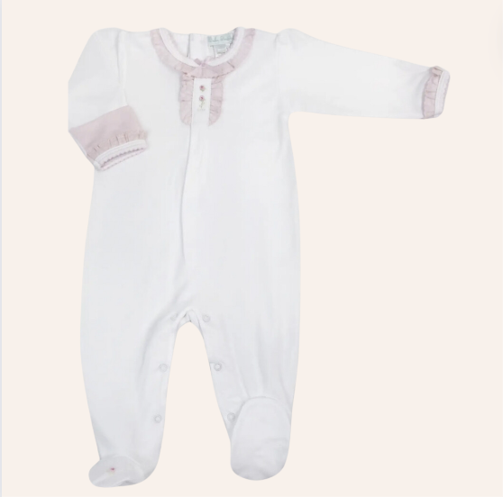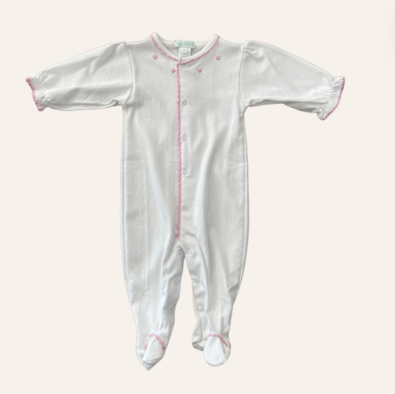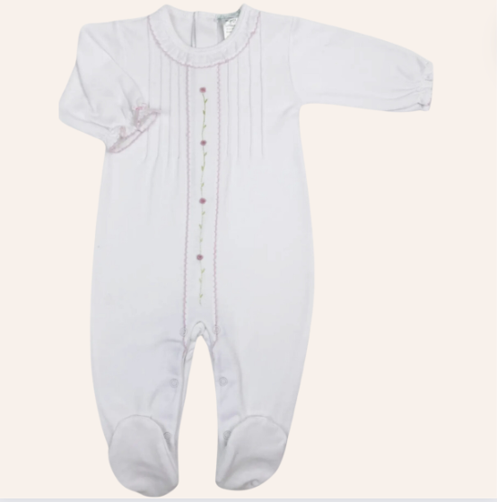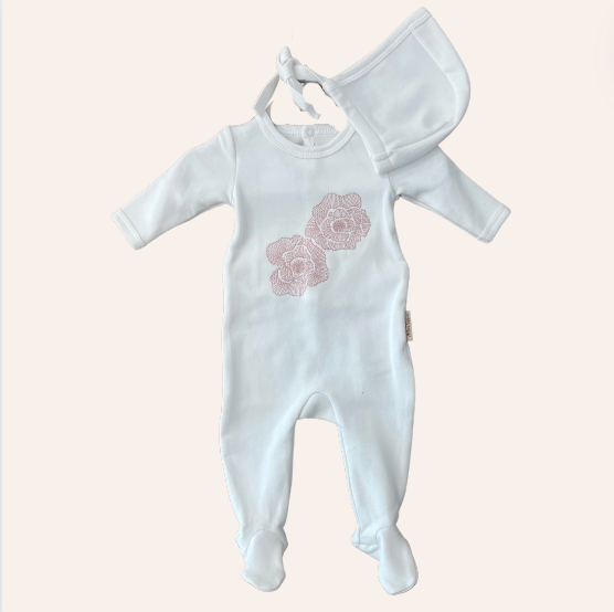 Mon Tressor Rose Embroidered Footie and Hat Set