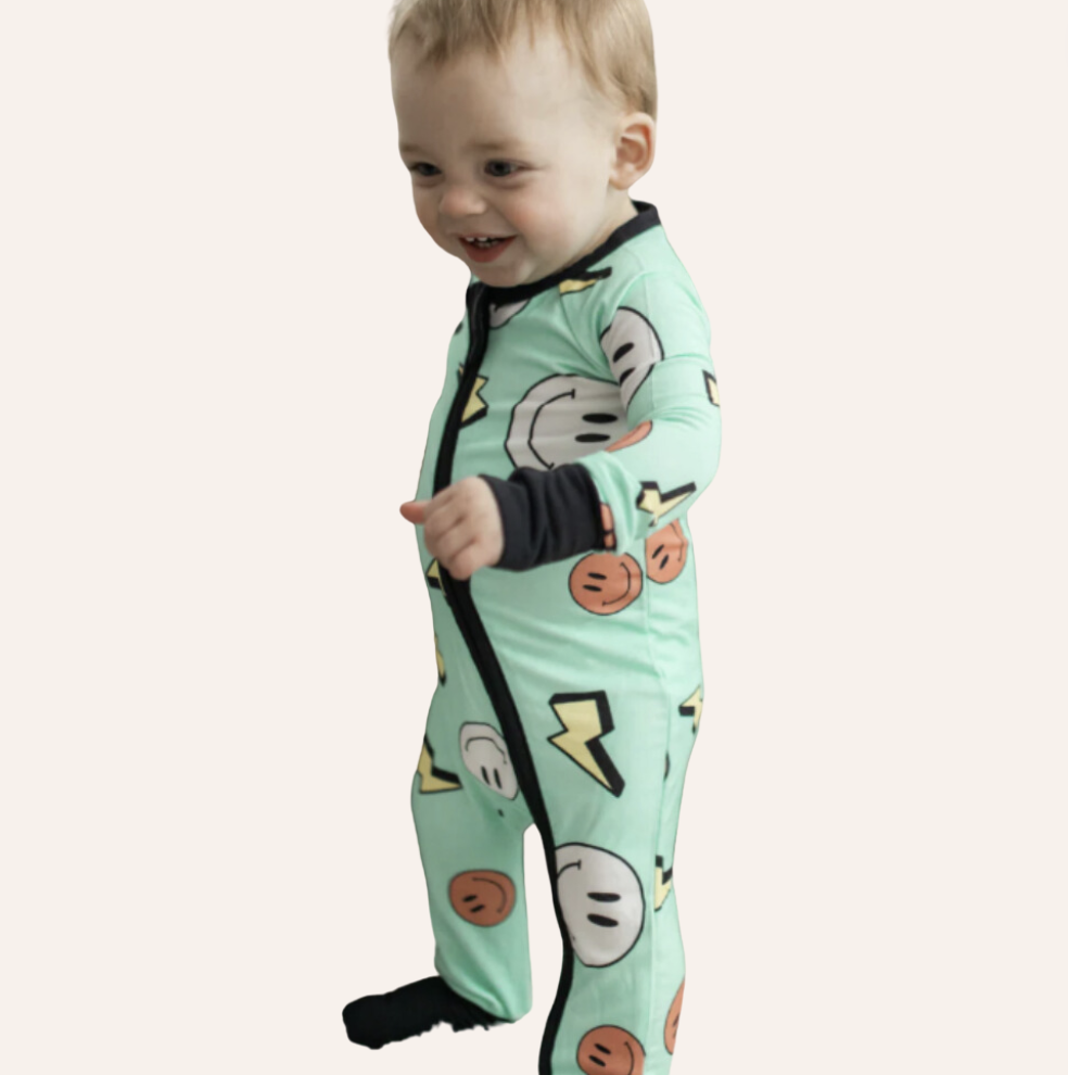 BT Blue Smocked Footie with Collar and Diamond Embroidery