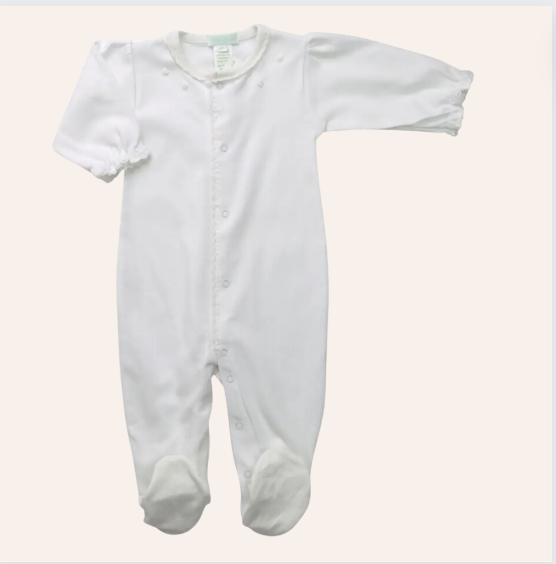 BBO White Pima Baby Footie with Baby Blue Stitching