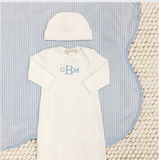 The Beaufort Bonnet Company Darling Debut Gown in Worth Ave White with Buckhead Blue