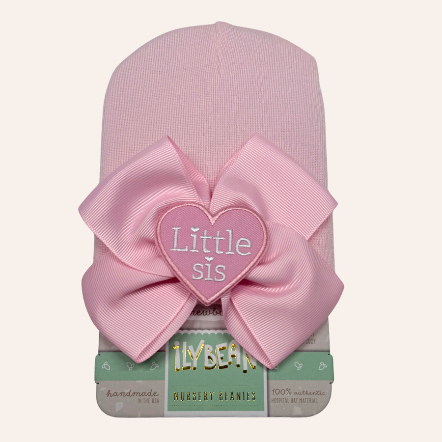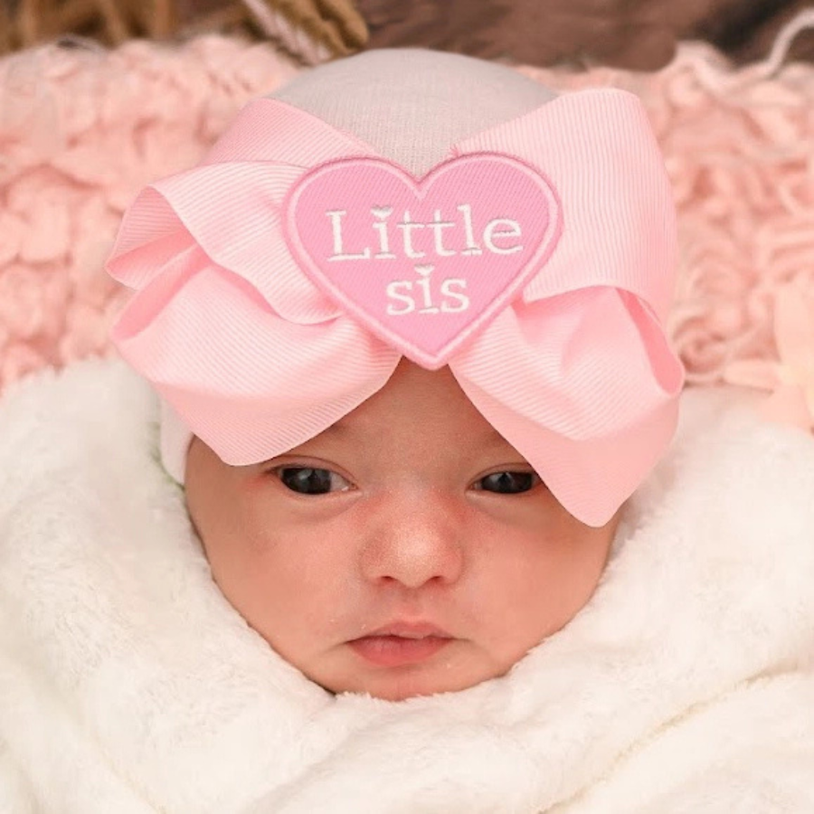 Little Sis Ribbon Bow Beanie For Baby Sisters