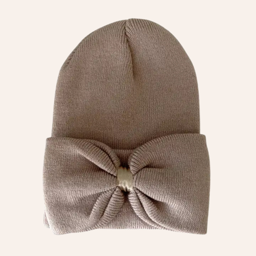 Taupe Buffalo Fall Plaid Bow Baby Beanie