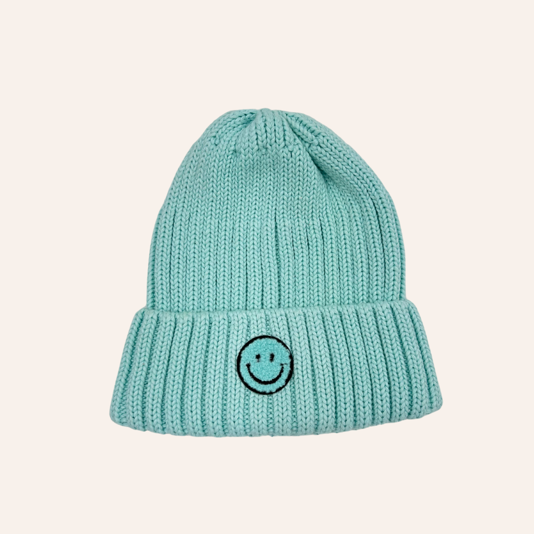 Kids Light Blue Smiley Face Beanie