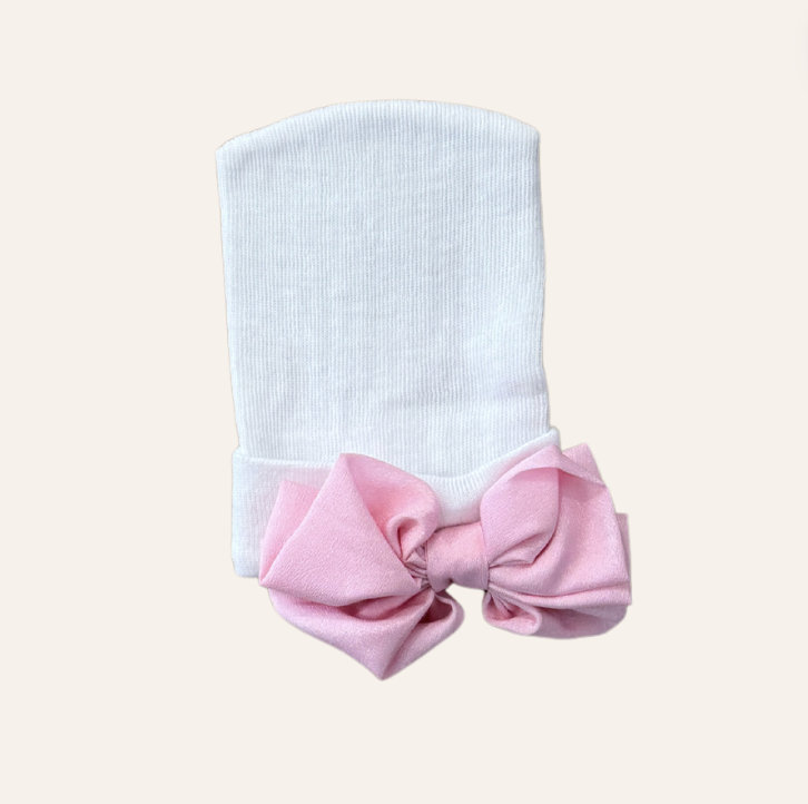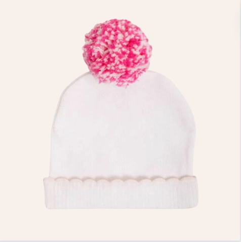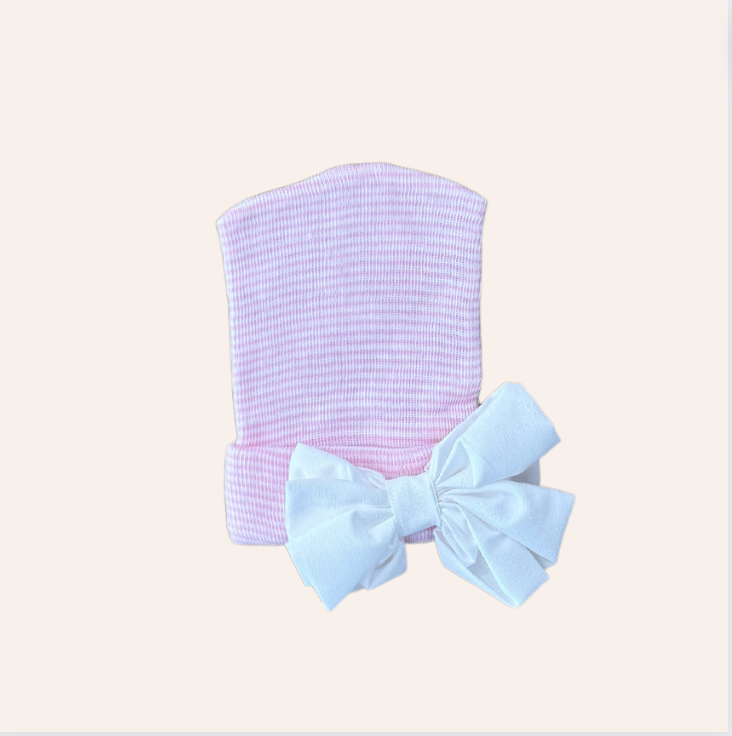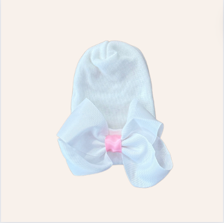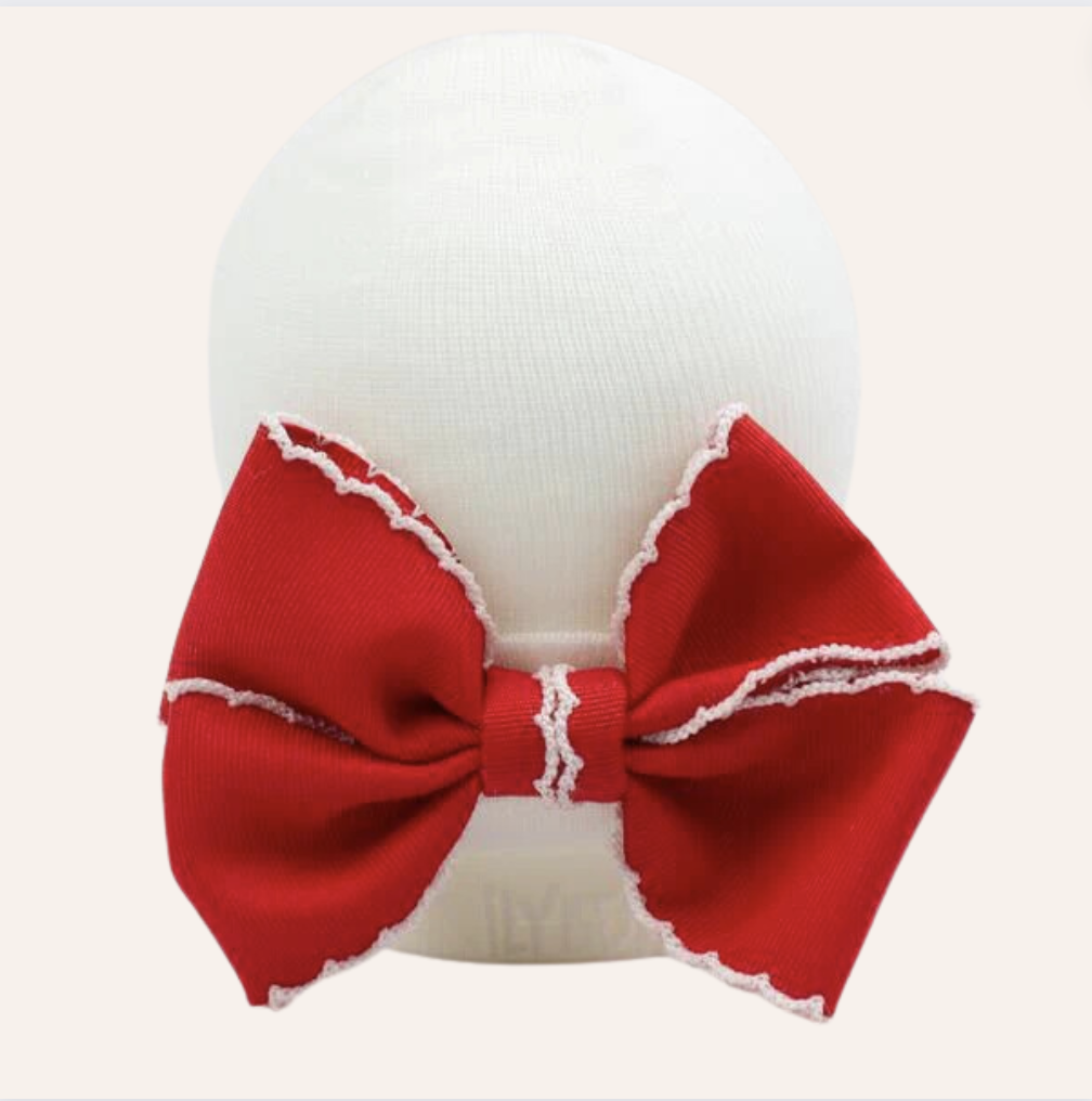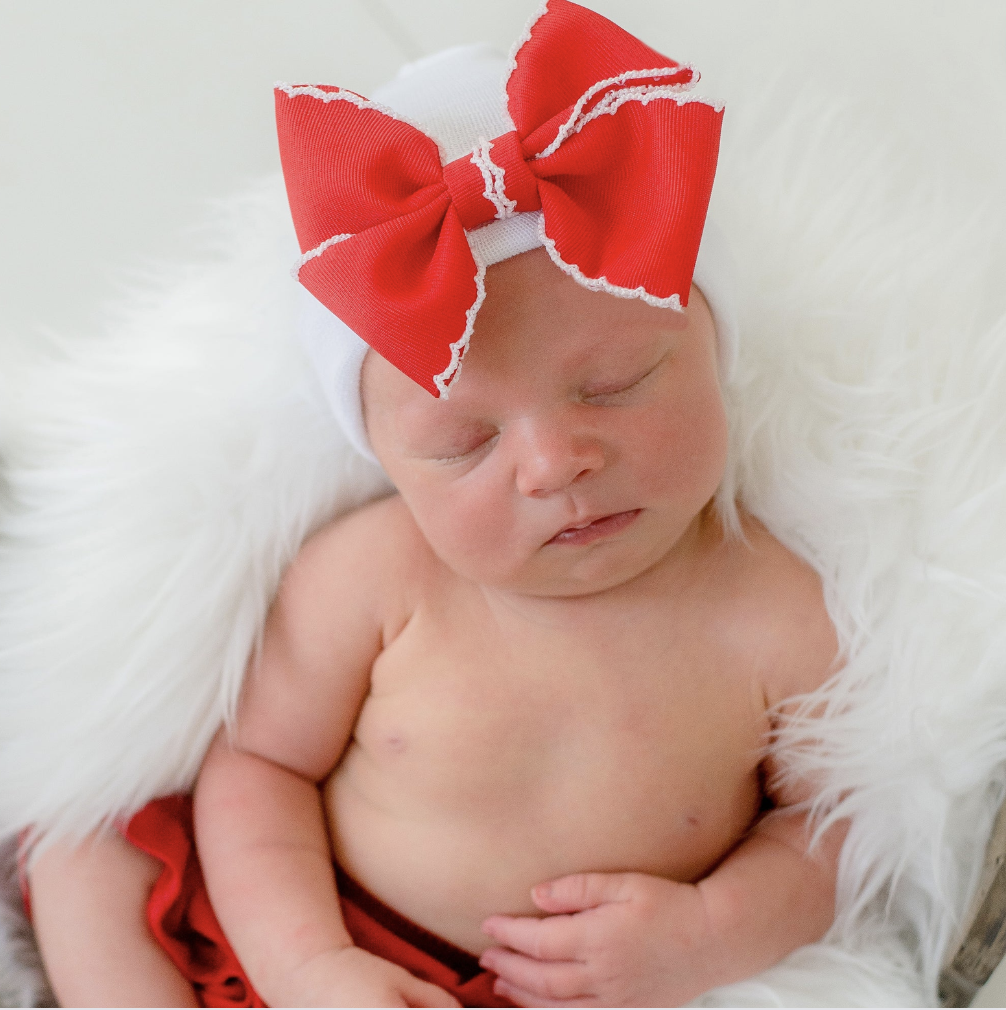 ILY White Newborn Beanie with Red and White Christmas ScallopDetail Bow