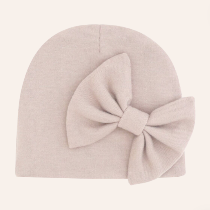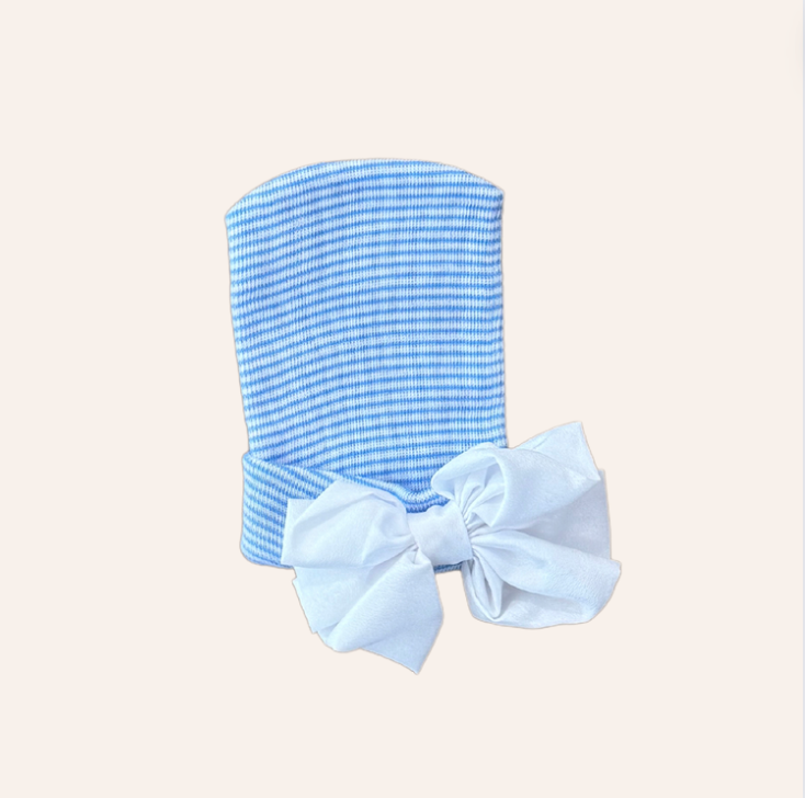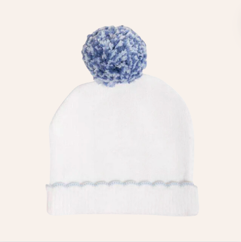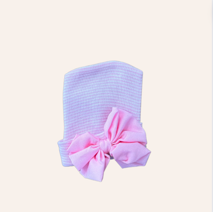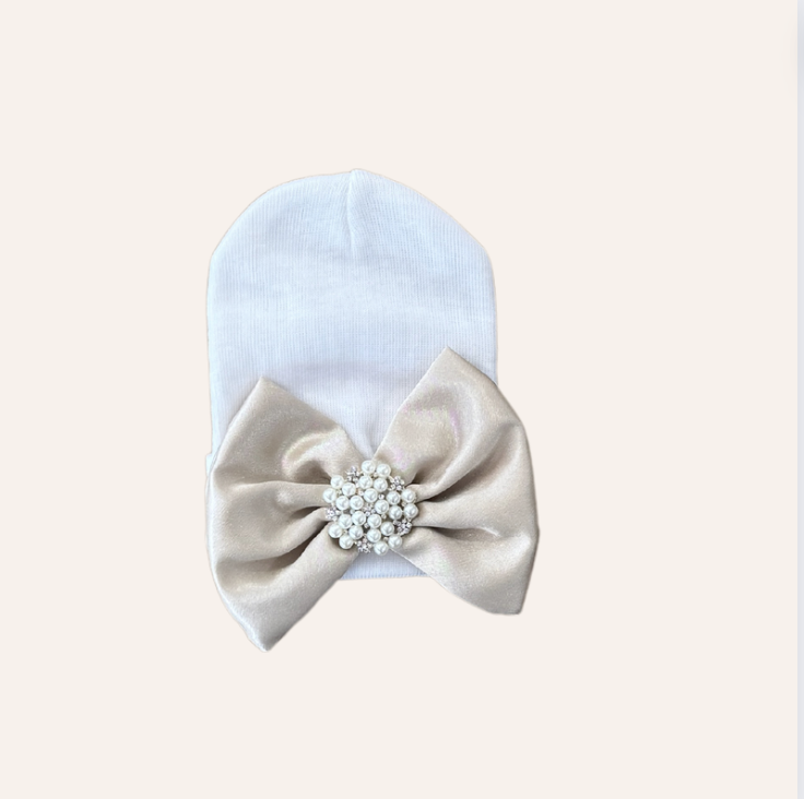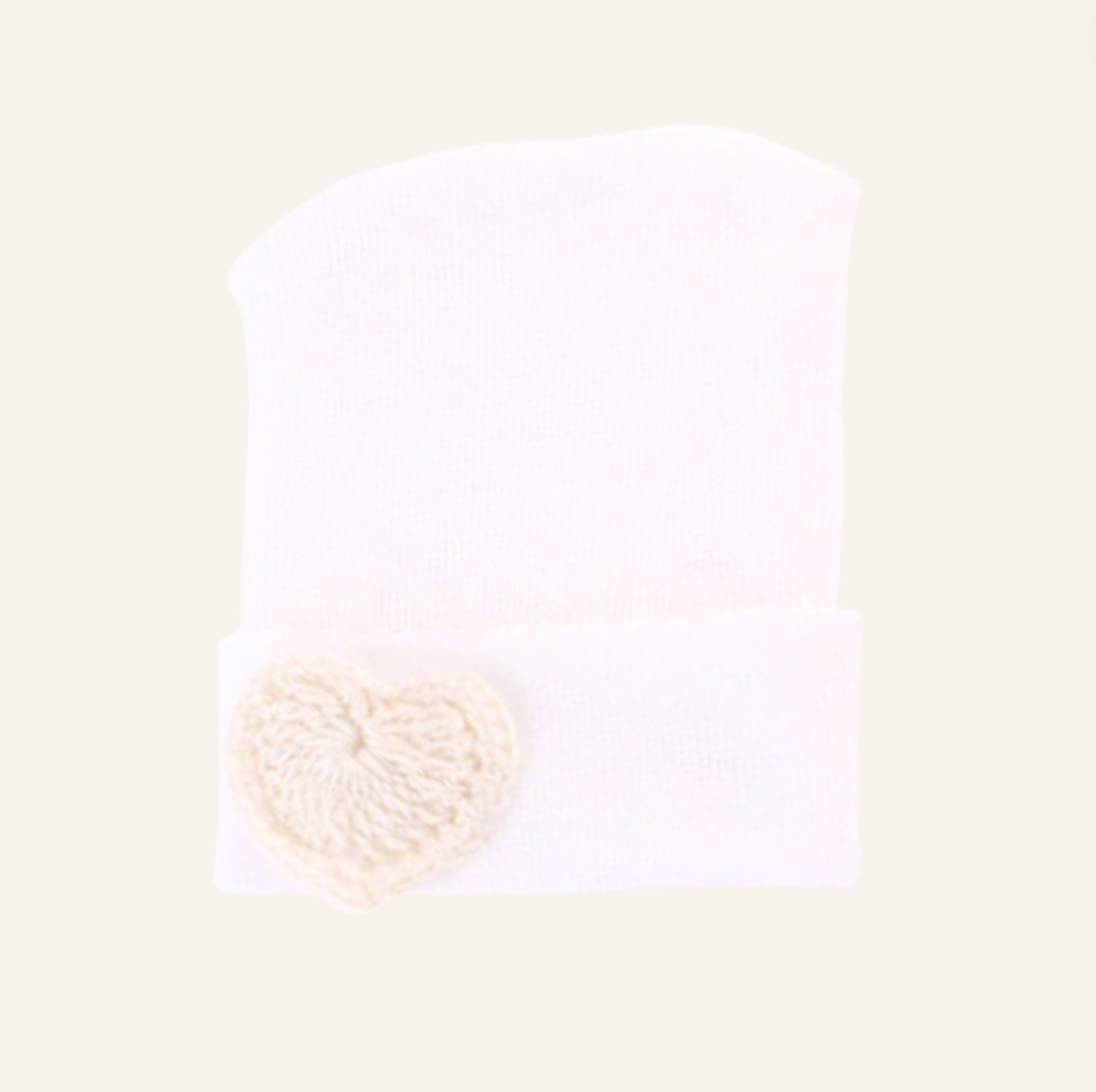 ILY White Newborn Beanie with Red and White Christmas ScallopDetail Bow